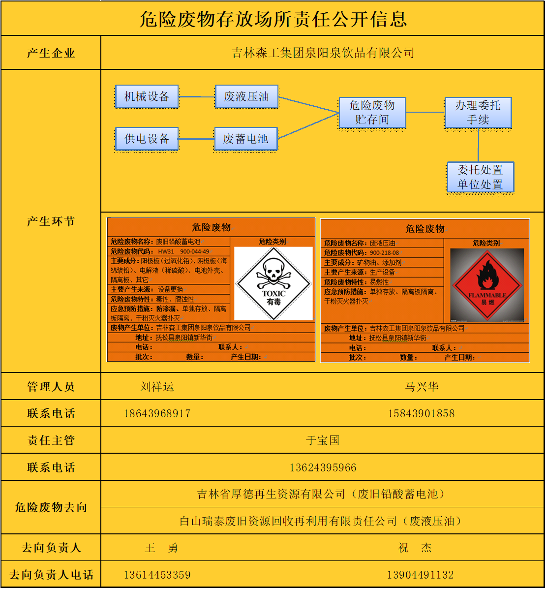 危險(xiǎn)廢物存放場(chǎng)所責(zé)任公開(kāi)信息表如下: